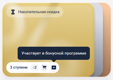 Бонусная программа – особый тип скидки, когда клиент может оплачивать покупки бонусами, накопленными с предыдущих покупок.