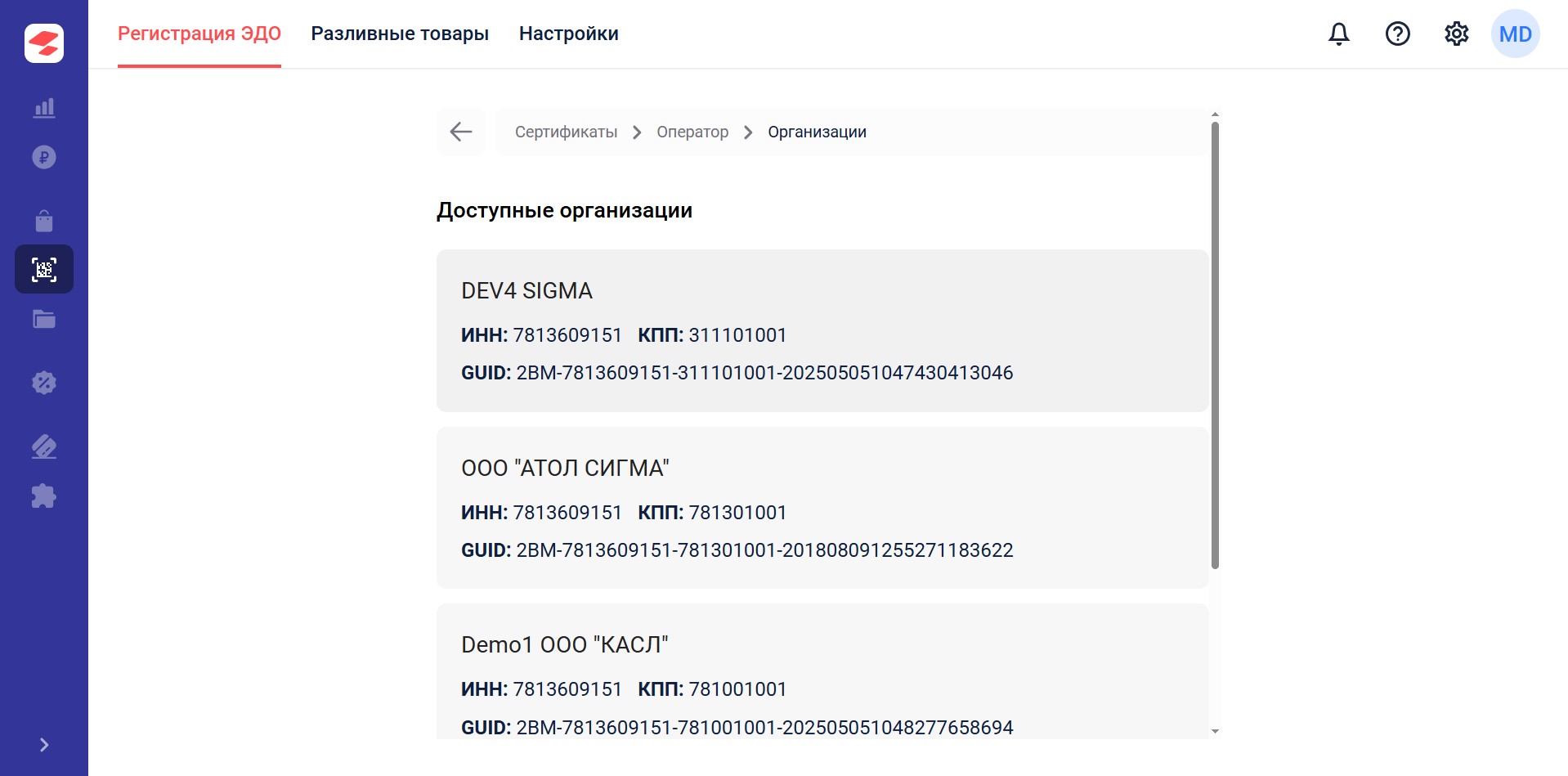 Важно! Интеграция АТОЛ SIGMA это лишь подключение к новому или имеющемуся ящику Контур.Диадок. Это позволяет использовать полноценный ЭДО в обоих личных кабинетах. Авторизовавшись в личном кабинете Контур.Диадок можно использовать другие возможности ЭДО в полном объеме. Важно помнить что исходящие документы требуют покупки тарифа.